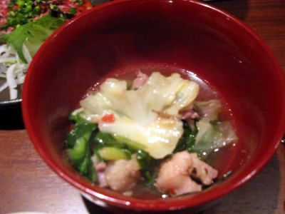 スープに、炙りのモツが最高でした。